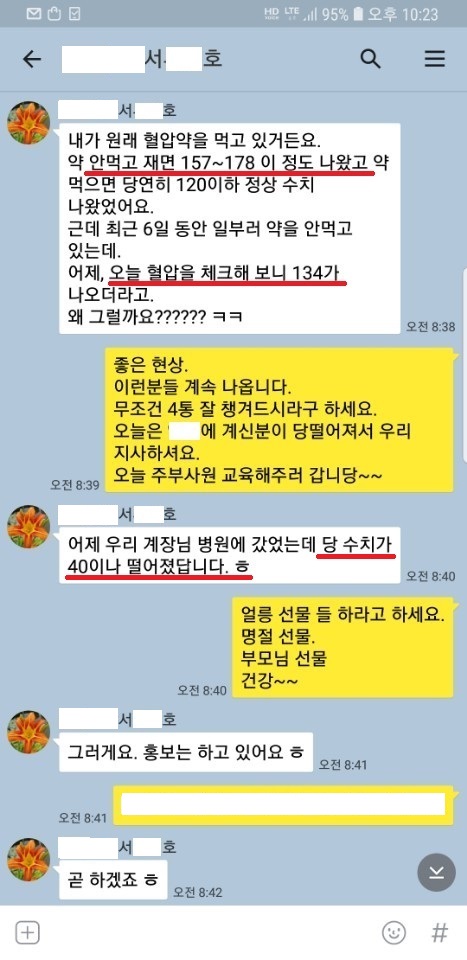 혈압약을 먹는데 178에서 134로 낮아졌어요!