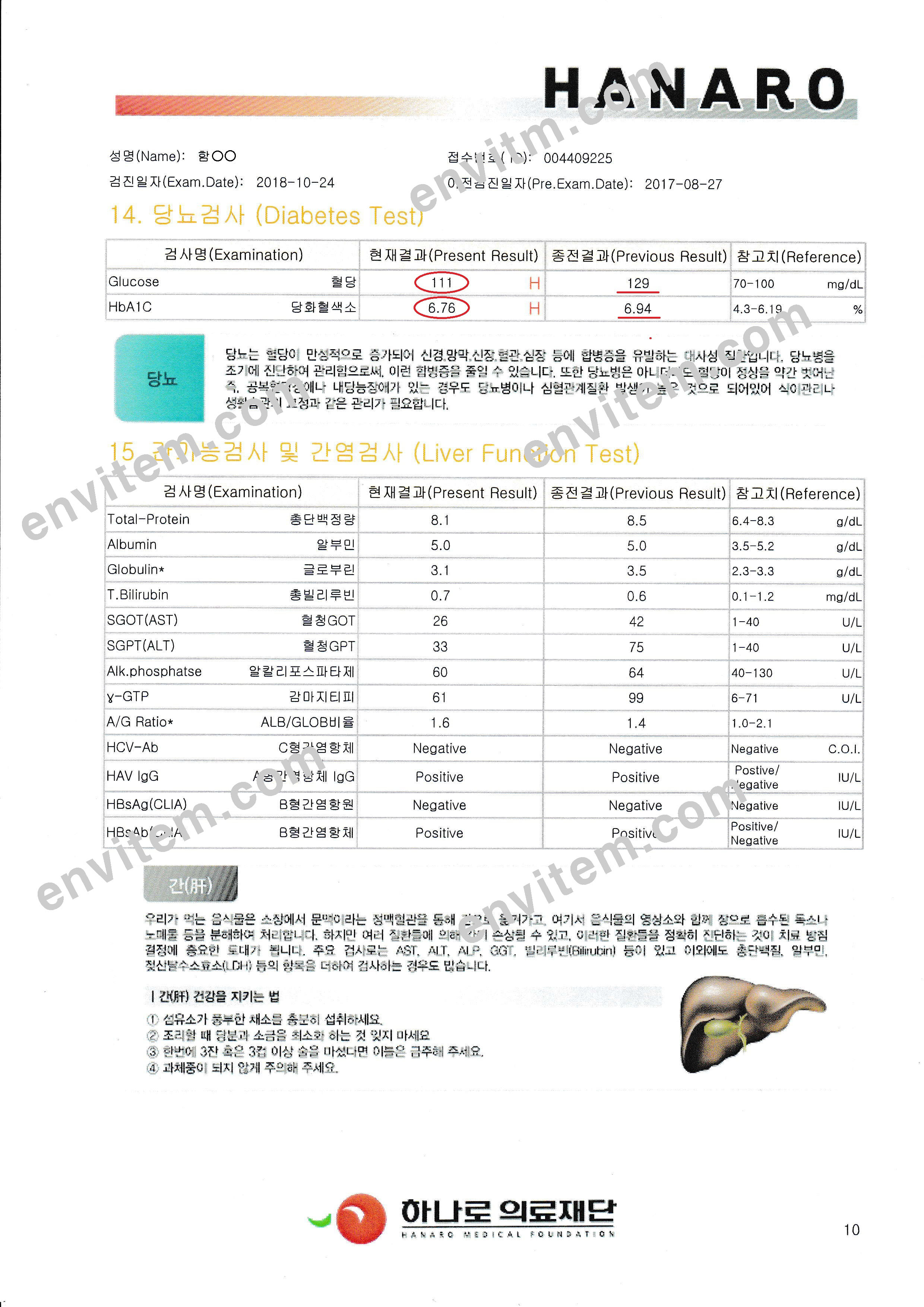 "회사에서 실시하는 종합건강검진 결과 작년에 비해 혈당도 줄고 콜레스테롤도 줄었어요.